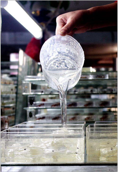 3、標(biāo)本體放入透明模具、添加樹(shù)脂材料進(jìn)行封埋