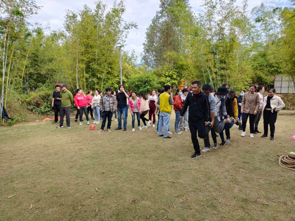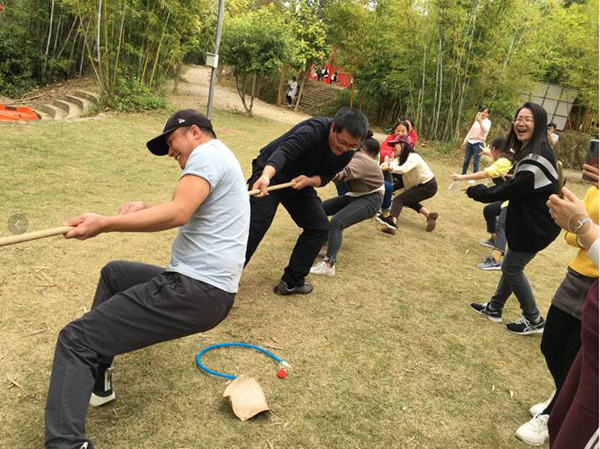 懷著激動(dòng)的心情,經(jīng)過短暫的車程后,大家于10:00左右來到本次活動(dòng)的目的地--長龍歡樂谷山莊。首先,分組進(jìn)行了豐富多彩的體育運(yùn)動(dòng),有六人單腳跳、運(yùn)輸氣球、拔河等項(xiàng)目。在運(yùn)動(dòng)中,大家團(tuán)結(jié)協(xié)作、歡聲笑語,平日里高強(qiáng)度的工作壓力被釋放一空。活動(dòng)拉近了同事之間的距離,更增強(qiáng)了集體榮譽(yù)感。