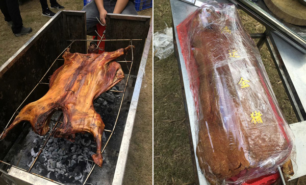 11:30體育運(yùn)動(dòng)結(jié)束后,大家來到燒烤場進(jìn)行自助燒烤。燒烤場座落在綠蔭濃濃的竹林中,雖是冬日,卻煦日暖暖,溫和的陽光打在竹葉上,落下斑駁的日影,清風(fēng)襲來,沁人心肺。燒烤場里飄香四溢的烤全羊、外酥里嫩的烤香豬、肥肥的雞腿、嫩嫩的雞翅、勁頭十足的牛肉丸,還有火腿、茄子、玉米、青椒等早已備好,此時(shí)大家早已饑腸轆轆,便迫不急待地動(dòng)起手來,“自力更生”,喂飽自己的肚子! 大家團(tuán)坐在烤爐旁,你遞個(gè)調(diào)料,我刷下辣醬,互幫互助,默契盡在不言中,其實(shí),這也是一種心靈的溝通與交流。